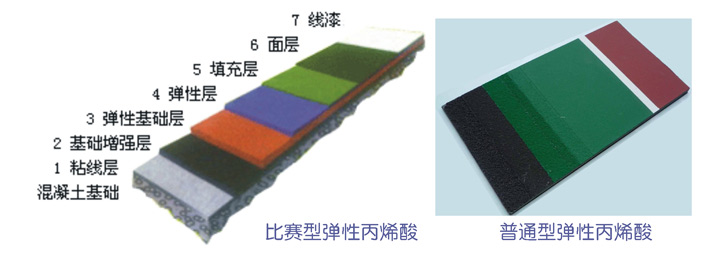 丙烯酸纹理料掺入丙烯酸色料全场涂刮二层丙烯酸调速料是一种含石英砂和100%丙烯酸乳胶的混合物。混合物经稀释后使用,可以提供浓厚并 且耐久的纹理表面,同时还可以增加色涂的牢固和厚度,增加耐磨功能及调节球速。每层干透及养护需24小时。