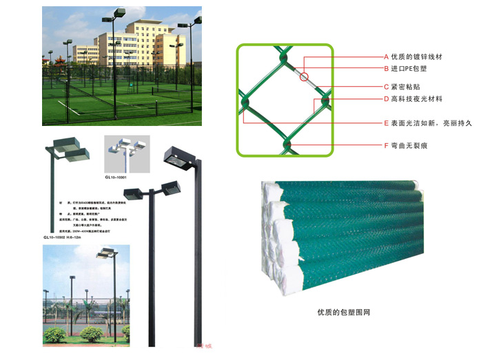 杭州奥翔拥有专业的施工体育围网(网球场围网,篮球场围网,足球场围网,体育场地专业围网)灯光的设计、铺装、施工、维修等整套方案。围网的样式变化多样,色彩图案新型,使用寿命更长。