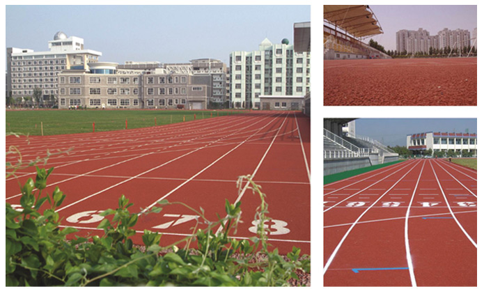 用于幼儿园各级各类学校及专业体育场、田径场跑道、半圆区、辅助区,全民健身路径,室内体育馆训练跑道 ,游乐场道路铺面等。